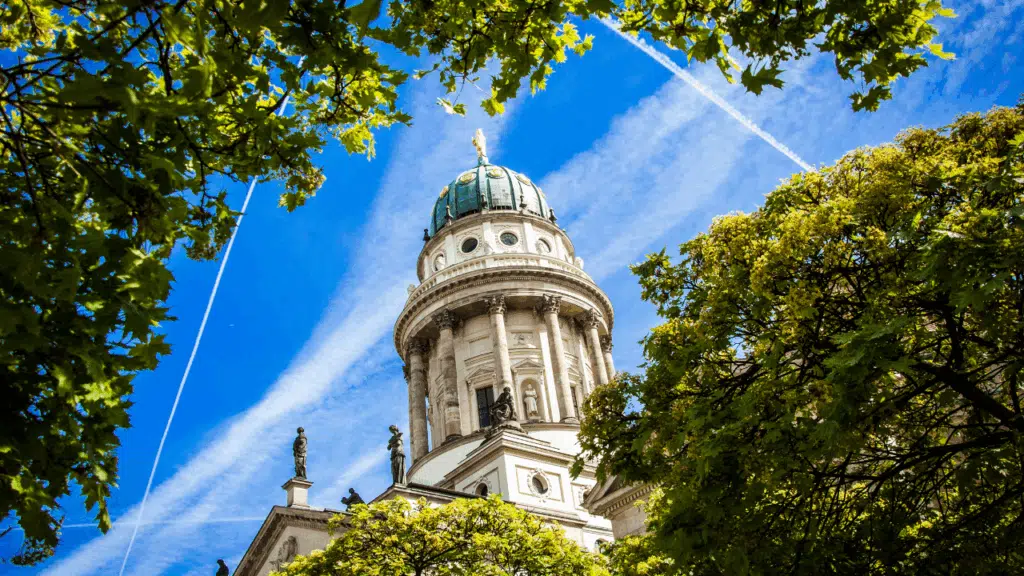 One of Berlin’s most beautiful squares, Gendarmenmarkt stuns with its trio of architectural gems: the French Cathedral, the German Cathedral, and the grand Konzerthaus. It’s the perfect place to slow down—sip coffee, people-watch, or soak in the elegant vibe. During winter, it transforms into a magical Christmas market that looks like it was plucked straight out of a snow globe.