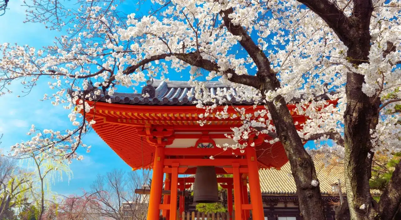 If you want to see this beautiful sight in person, the best time to visit Japan is between late March and early April. During this time, the central parts of Japan, like Tokyo and Osaka, are colored pink with sakura blooms. Visitors can delight in enchanting strolls, scenic picnics, and even the occasional sakurafubuki (cherry blossom snowstorm), where the wind scatters the sakura blossoms on the breeze.