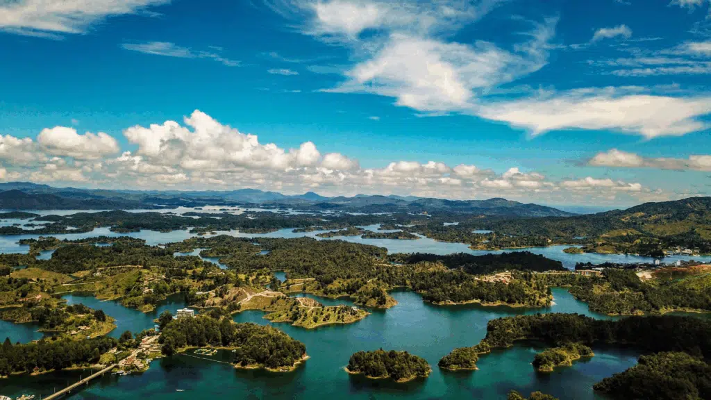 A few hours from the city, Guatapé is a feast for the eyes with its rainbow-painted buildings and charming cobblestone streets. Climb the 740 steps of El Peñol Rock for panoramic views of the lakes below—one of Colombia’s most iconic photo ops. Enjoy a boat ride, savor fresh fish, and soak in the peaceful vibe of this vibrant lakeside town.